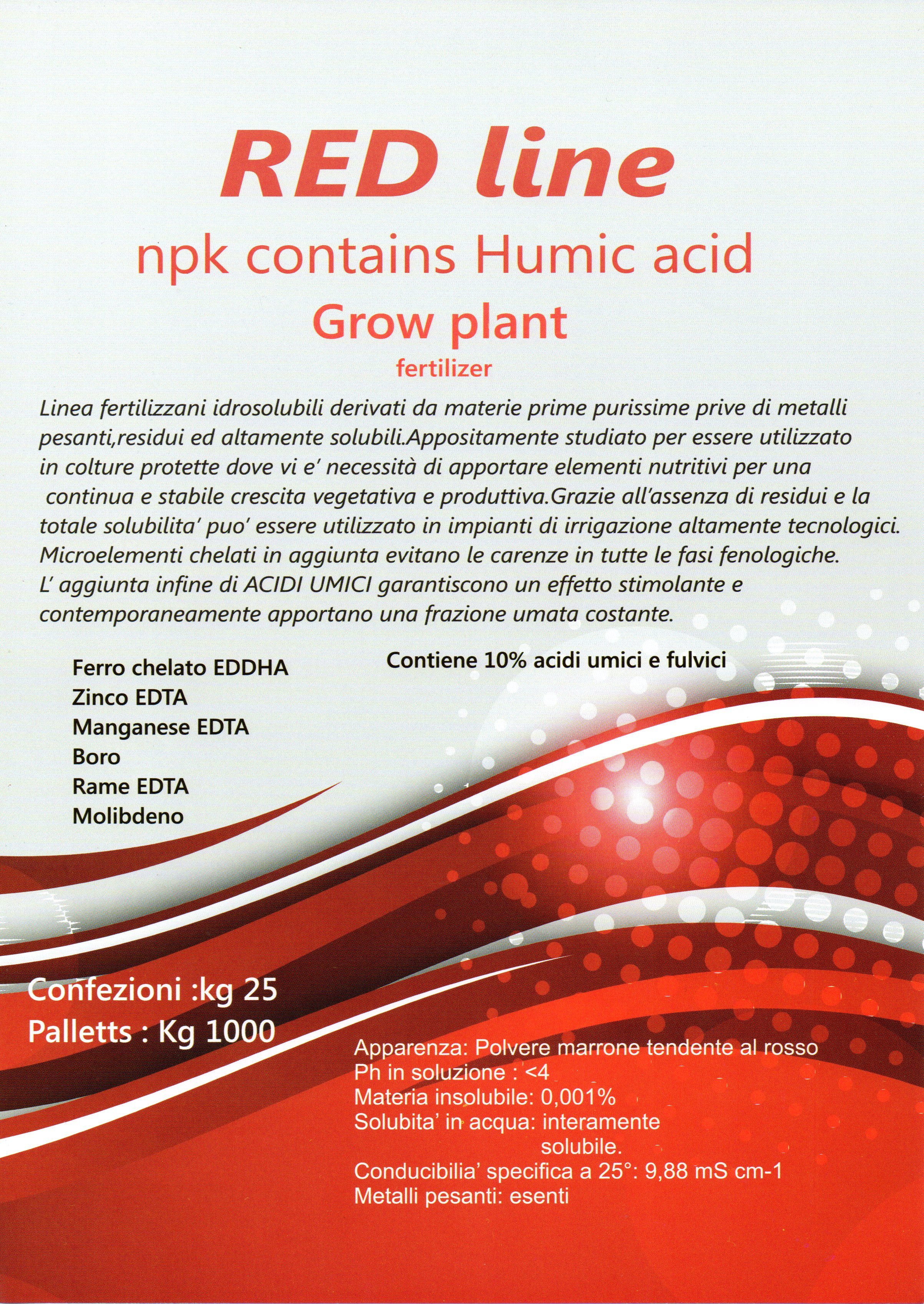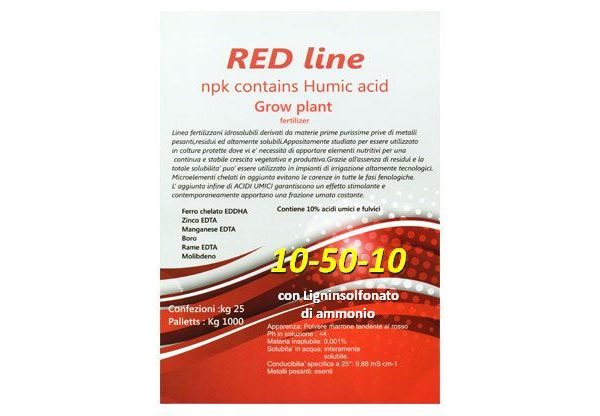 La linea RED LINE contiene ACIDI UMICI e LIGNIN-SOLFONATO DI AMMONIO.