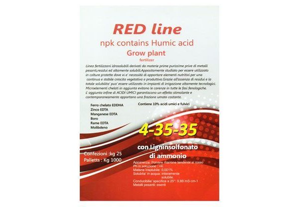 La linea RED LINE contiene ACIDI UMICI e LIGNIN-SOLFONATO DI AMMONIO.